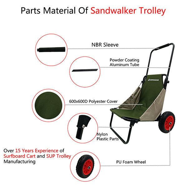 このカートを使用すると、ウォーター スポーツ用品をビーチまで簡単に運ぶことができます。広々としたデザインと頑丈な構造により、ギアを簡単に持ち運ぶことができます。