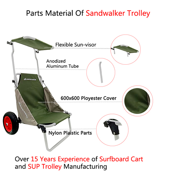 丈夫な構造: 当社のビーチカートは長持ちするように作られています。二重壁ナイロン構造のホッパー、錆びにくいアルミニウム合金アルマイト処理されたフレーム、ステンレス鋼のボルトとネジ、耐久性のあるナイロンプラスチックパーツが特徴です。