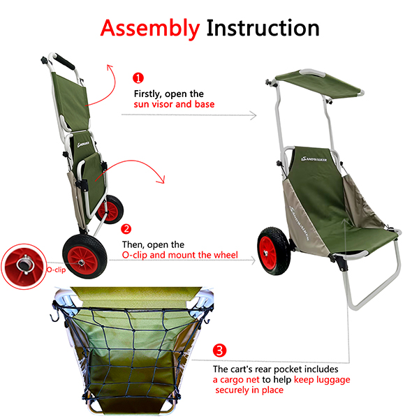 柔軟なサンバイザー:当社のビーチカートには、あらゆる角度に調整できる柔軟なサンバイザーが付いています。太陽光線から身を守り、必要に応じて日陰を楽しんでください。